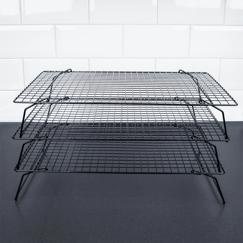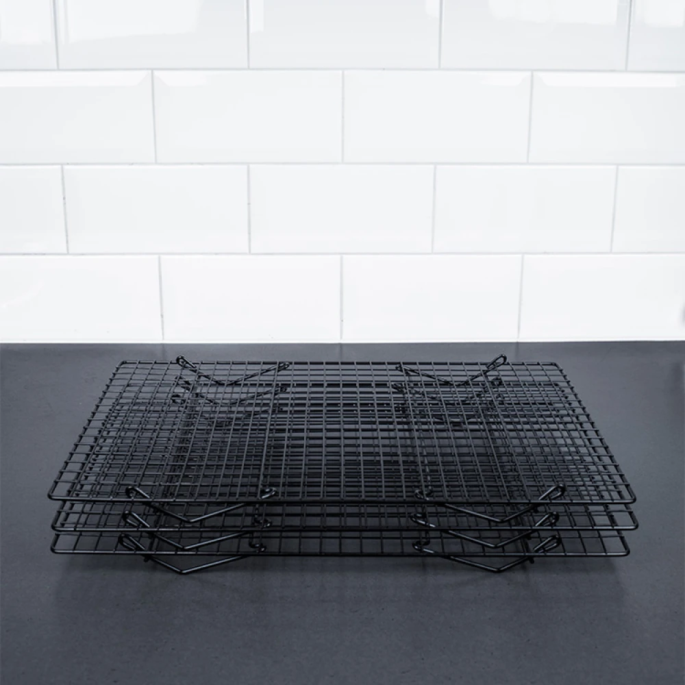 Praktiske og sammenklappelige bageriste, som du kan stable oven på hinanden og sætte dine gode kager og bagværk på, når de skal køle af. Det luftige mellemrum i risten gør, at småkagerne afkøles hurtigere og får den perfekte og sprøde konsistens.