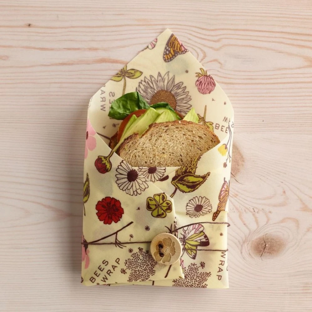 Bee’s Wrap Vegan er en 100 % plantebaseret og genanvendelig madindpakning, som du kan pakke mad ind i eller bruge som låg over skåle. Voksdugen er udviklet af det amerikanske firma Bee’s Wrap og er et vegansk alternativ til de populære bivoksduge.
