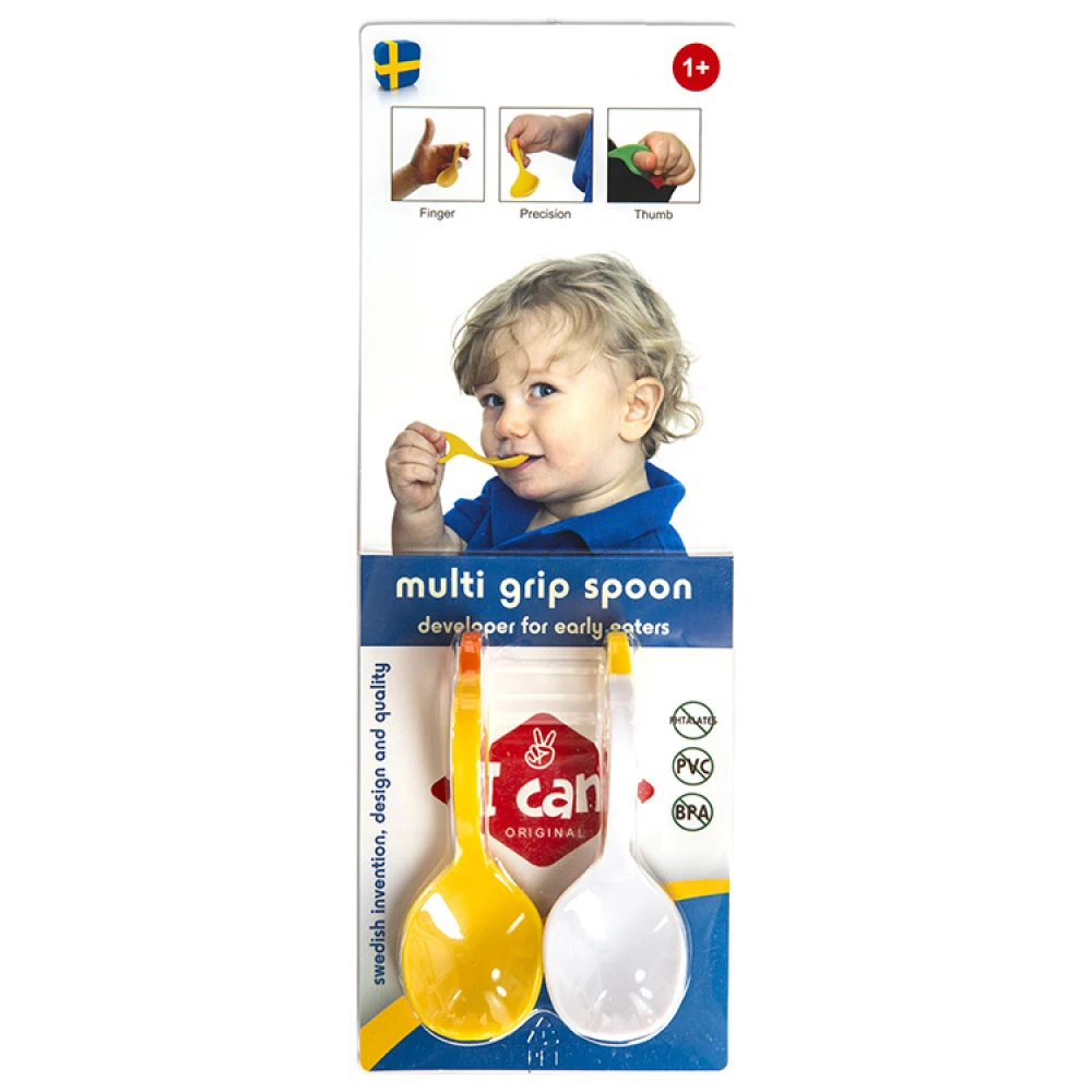 Børneske fra ICan er specielt tilpasset børns små hænder og med sin lave vægt og fleksible multigrebsdesign kan børn holde skeen præcis, som de vil. Tommelfingergreb, pegefingergreb, pincetgreb eller tag fat i skeen med hele hånden og få maden til at komme i munden med mindre spild.