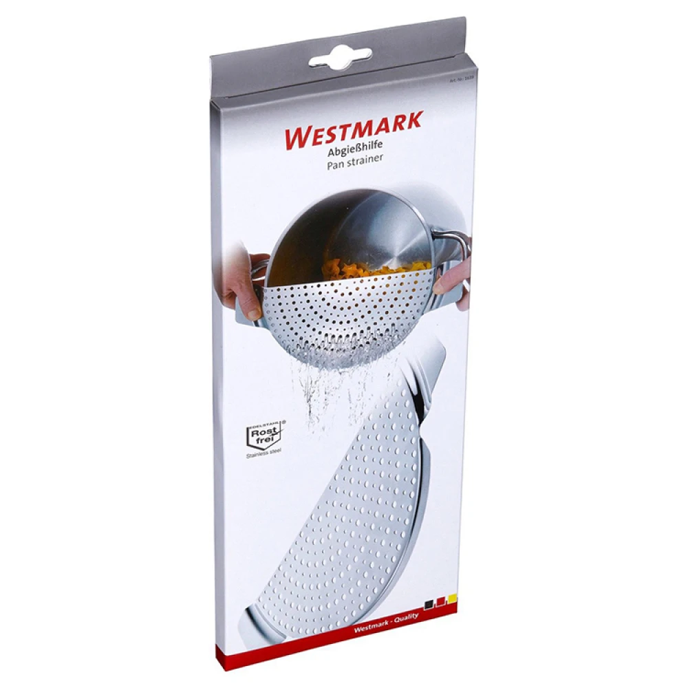 Smart dørslag i rustfrit stål fra tyske Westmark, der både er nemt at bruge og praktisk at opbevare i skabet! Dørslaget passer til alle gryder op til 26 cm i diameter og filtrerer effektivt kartoffel- eller pastavandet ud gennem de små huller.