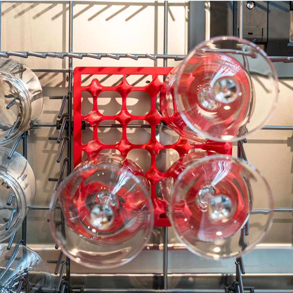 Tipple er en svensk produceret glasholder til opvaskemaskinen, som giver dig mulighed for at vaske flere høje glas på samme tid. Nyttig efter middage og fester, når du hurtigt vil kunne vaske så mange glas som muligt uden risiko for, at de vælter eller går i stykker.