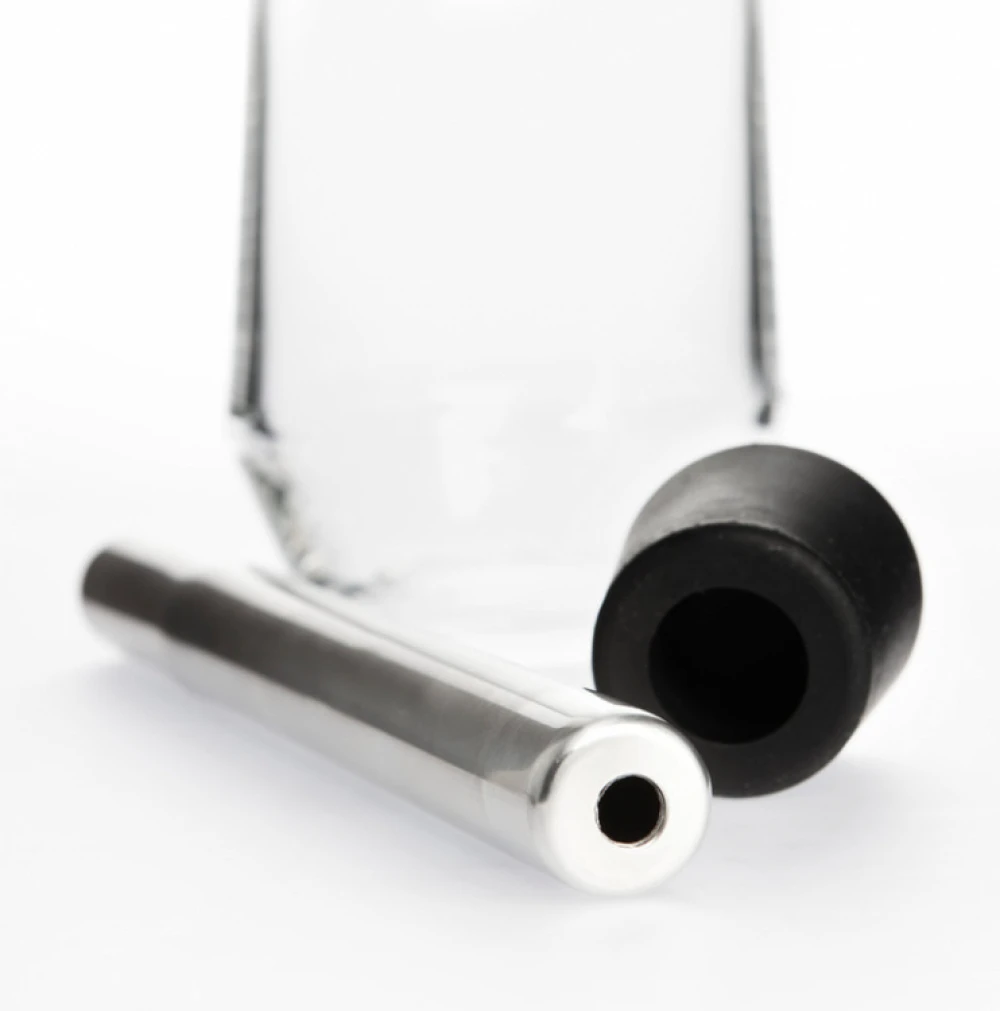 Glaskaraflen er fin at stille på det dækkede bord og der medfølger også en korkkugle, som du kan bruge som låg de gange, du ikke ønsker at bruge kølestangen. For eksempel hvis du serverer rødvin fra karaflen.