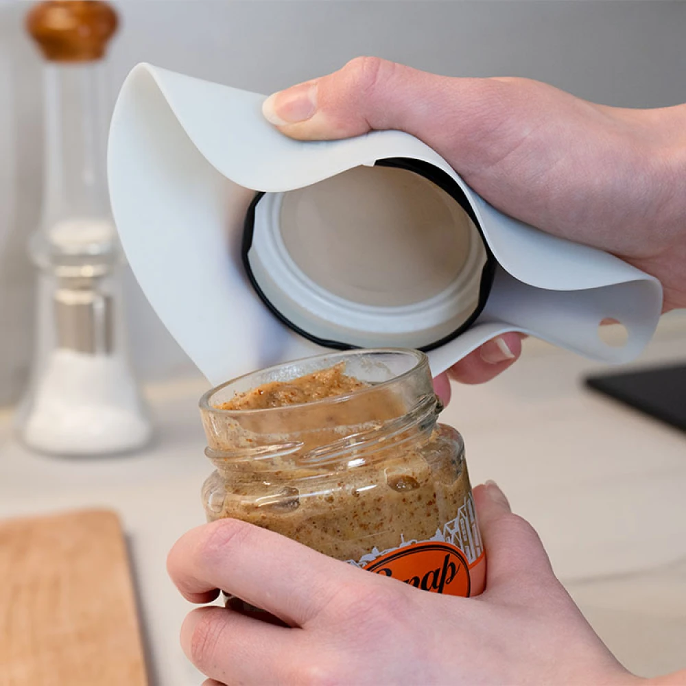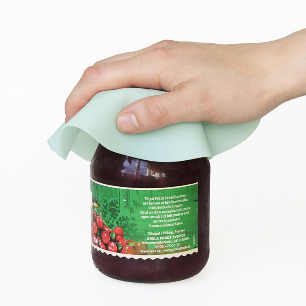 Når låg på dåser og flasker er blevet suget ind, er denne silikone grebsklud en uvurderlig hjælp. Grebskludens høje friktion giver et meget fast greb og gør det nemt at skrue et skruelåg af selv for dem med svagere hænder.