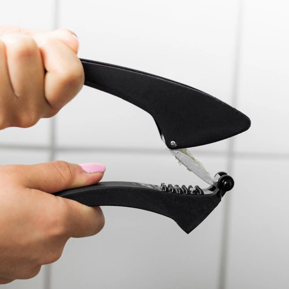 Denne hvidløgspresser både ser ud og fungerer på nøjagtig samme måde som almindelige hvidløgspressere. Put i et hul og pres indholdet ud. Men det er når pressen skal renses, at denne hvidløgspresser virkelig skiller sig ud i mængden!