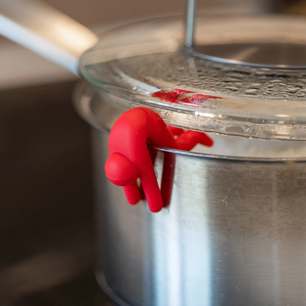 Sjov og praktisk lågholder, der hænger ud over kanten af kasserollen eller gryden, så dampen kan slippe ud. Lågholderen er anvendelig til pastakogning og andre ting, der ellers nemt koger over. Låget sælges i 2-pak, med en rød og en hvid. Lågholderen er en perfekt gave til dem, der elsker at lave mad derhjemme og får de fleste til at smile!