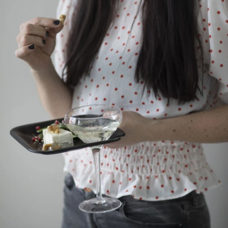 En mingeltallerken med glasholder er en praktisk løsning til fester og mingel, når du mingler rundt og spiser fingermad. Den robuste mingleplade giver dig god plads til gode udskæringer og hentemad og har et hul i det ene hjørne, hvor du kan hænge dit vin- eller champagneglas.