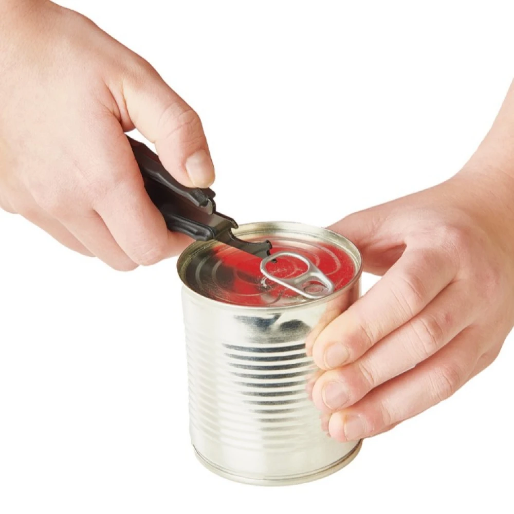 Bag på flaskeåbneren er der også to andre smarte værktøjer. Brug kapselåbneren til nemt at åbne en plastik- eller glasflaske, eller brug den lille metal-jig til at fiske ringen på et dåselåg ud.Flaskeåbneren giver et optimalt greb om skruelåg på PET-flasker og mælke- og yoghurtpakker med låg på ca. 3 cm i diameter. Flaskeåbneren kan dog teknisk set også gribe fat i andre skruelåg med en diameter på mellem 2,3 cm og 4 cm.