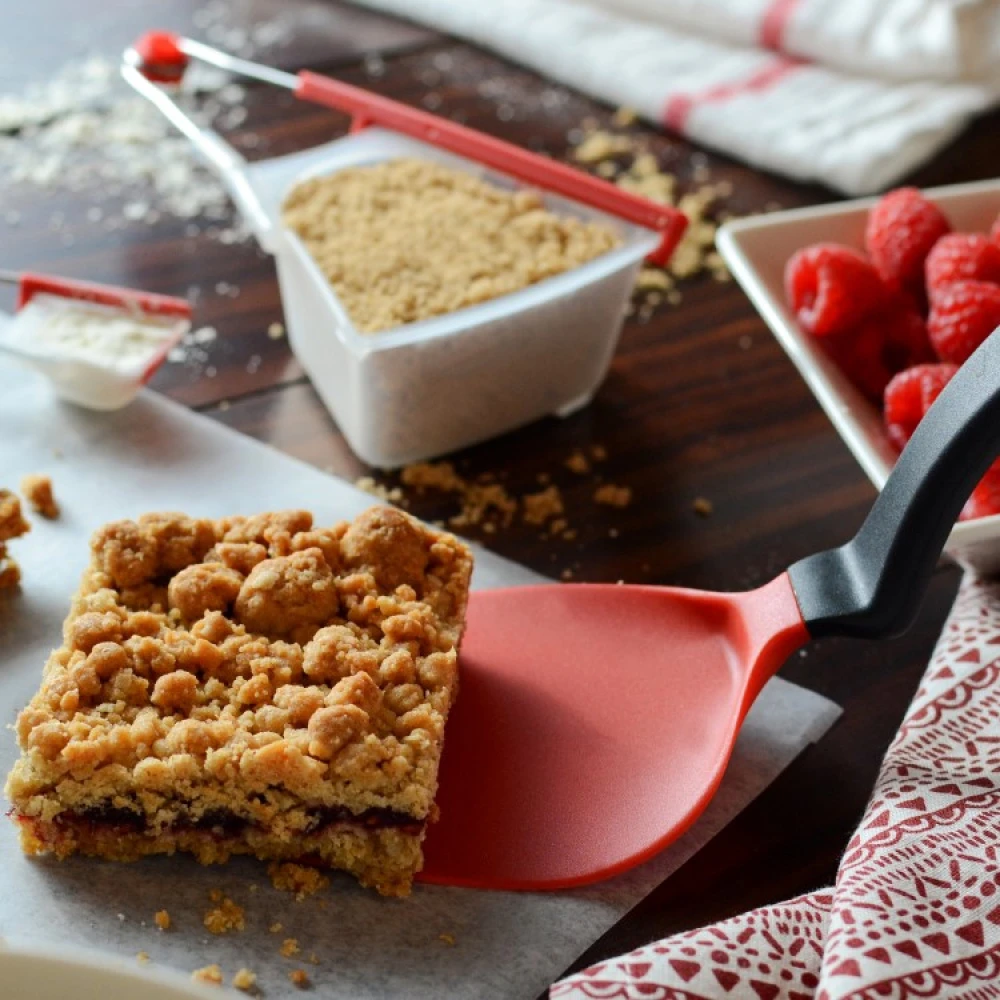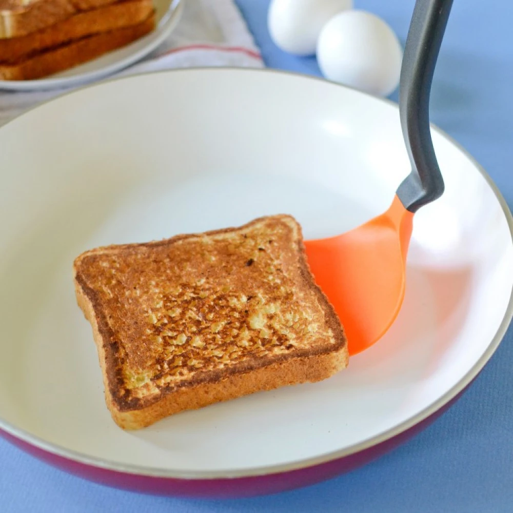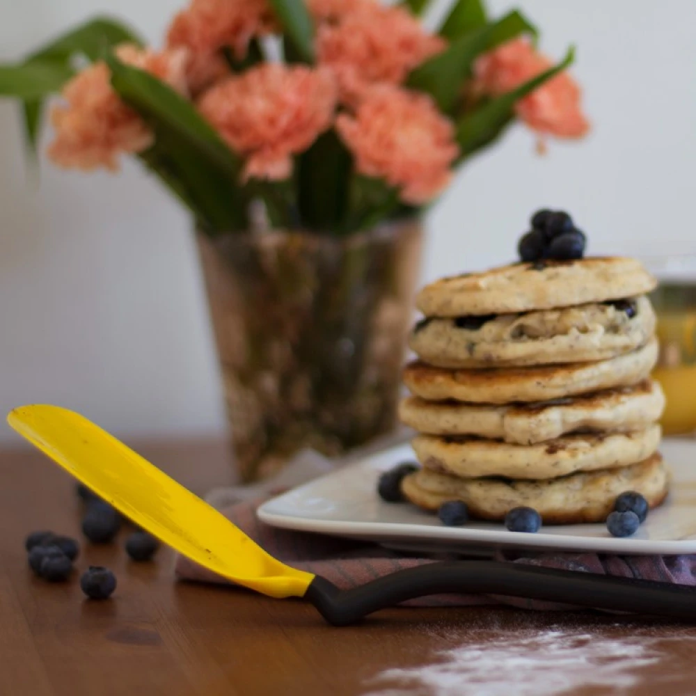 Den brede spade er lavet af et fleksibelt nylonmateriale, så du nemt kan komme under og løfte, flytte eller vende pandekager, bøffer, pandekager og æg. Det fleksible blad giver dig også mulighed for nemt at skrabe grydens kanter, hvor mange andre spatler ikke kan nå.