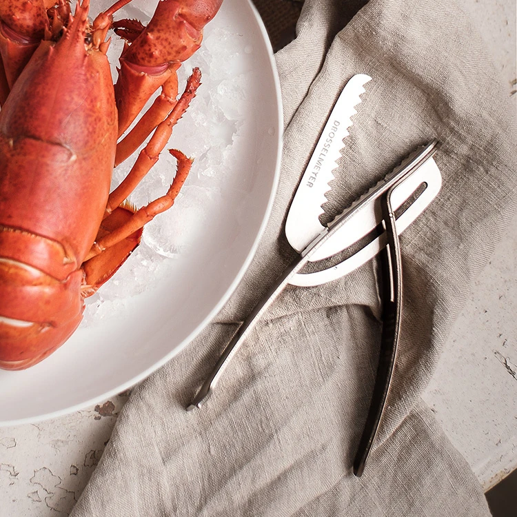 Den patenterede skalddyrstang har et godt greb og det kraftige håndtag formår at knække knogler og klør i de fleste størrelser. Placer kloen langs indersiden af tangen og tryk forsigtigt, indtil kloen revner. Gentag proceduren et par steder mere, indtil du kan tage alt kødet ud fra kloen i et helt og fint stykke, klar til at nydes.