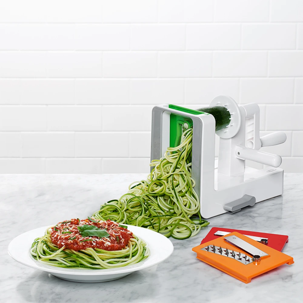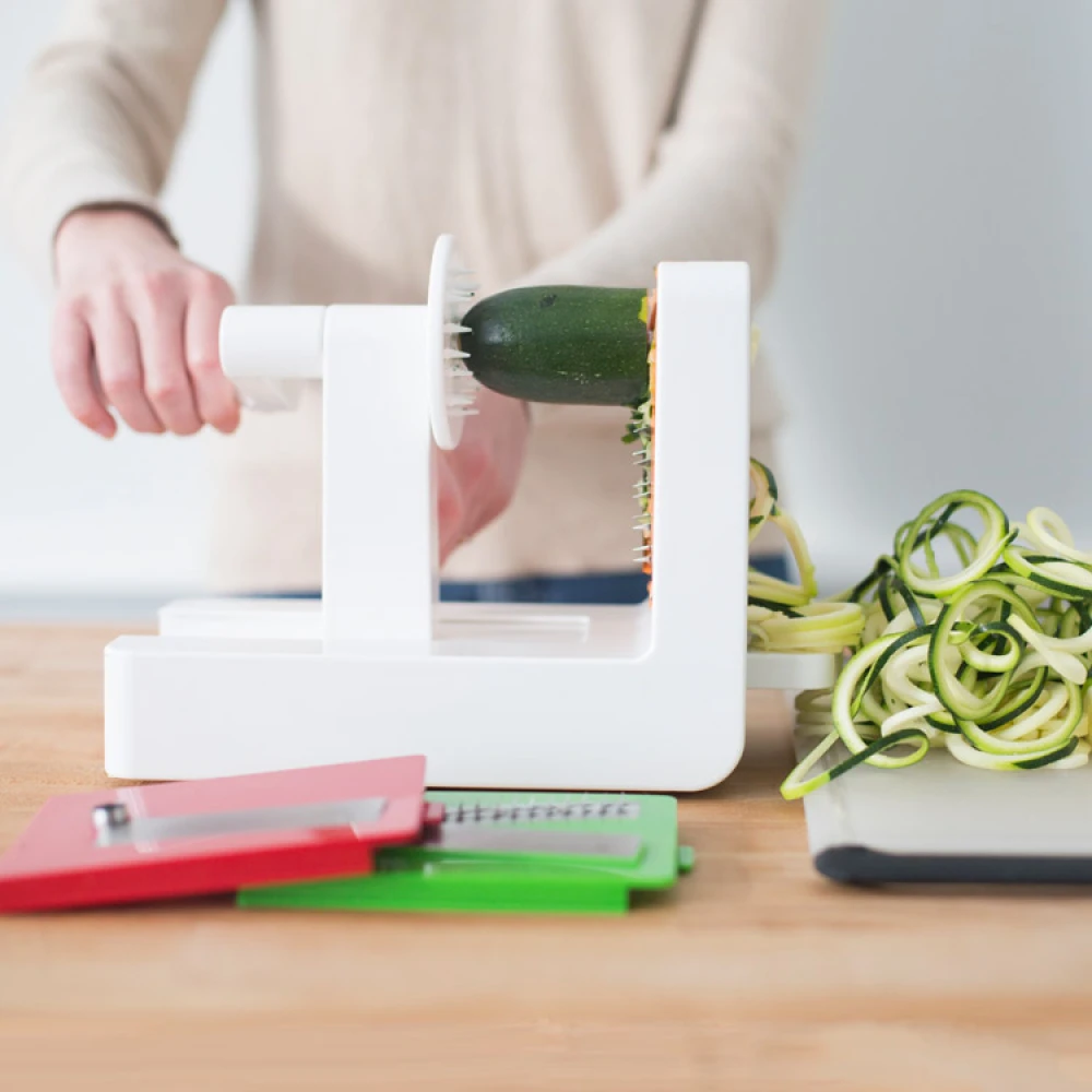 Uanset om du leder efter et sundt alternativ til pasta, eller en spændende måde at give dine klassiske opskrifter et twist på, er det nemt at lave lækre måltider med en spiralizer.Du skal bare placere din grøntsag eller frugt i spiralizeren, vælge en af de tre udskiftelige klinger og begynde at dreje rundt.