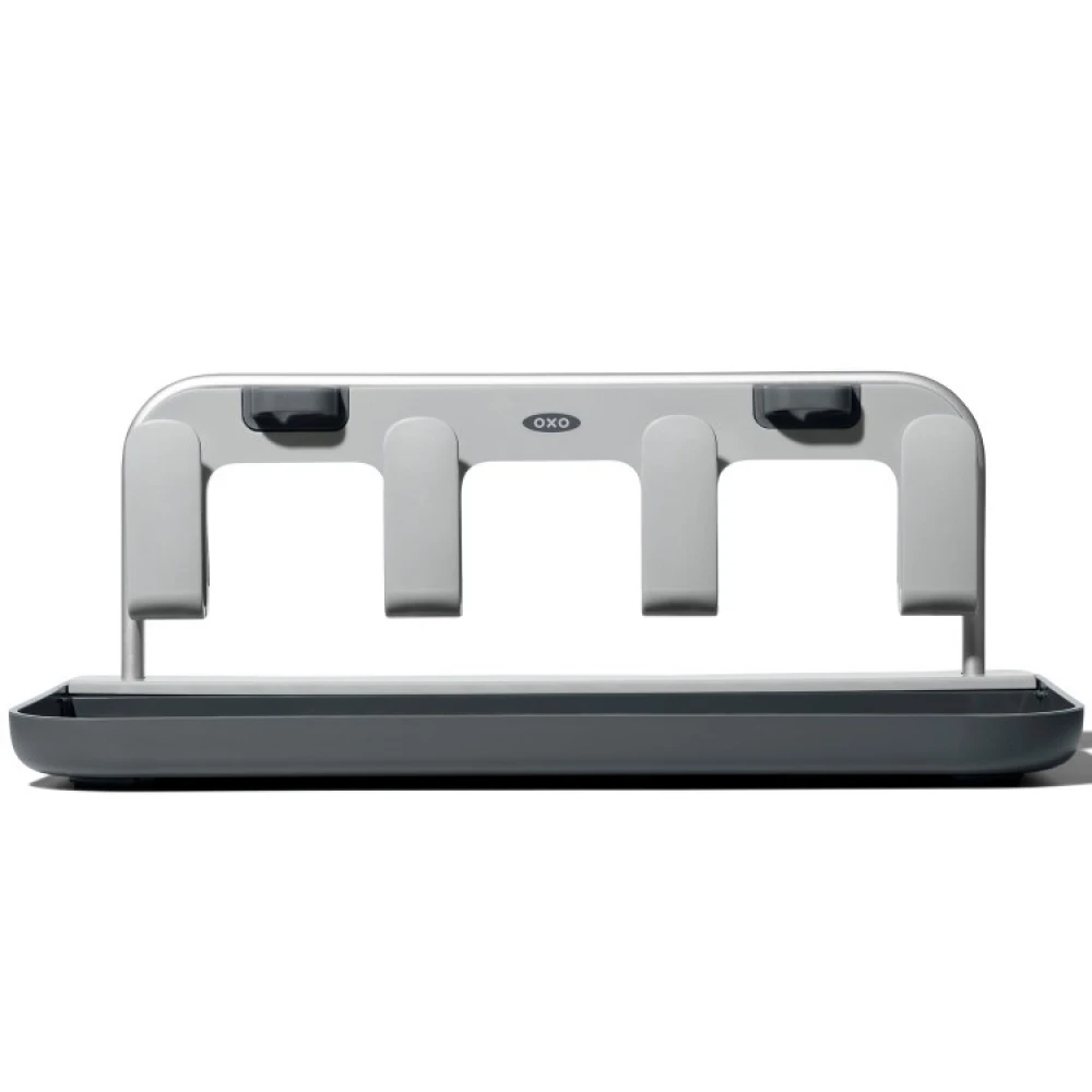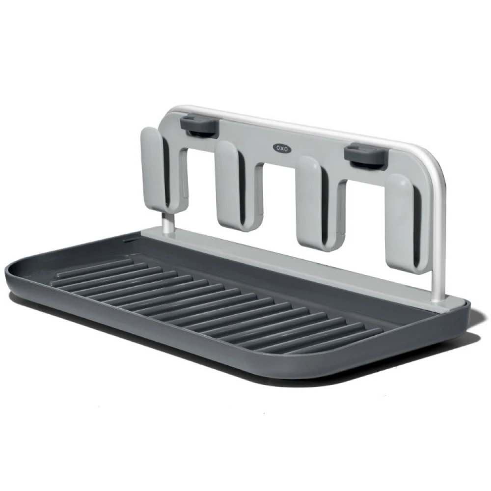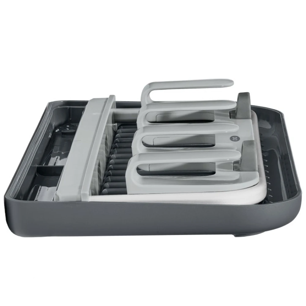 Efter brug kan du fjerne den aftagelige del, hvor holderne er placeret. Læg den i drypbakken, så du nemt kan passe og opbevare hele tørrestativet i skuffen.