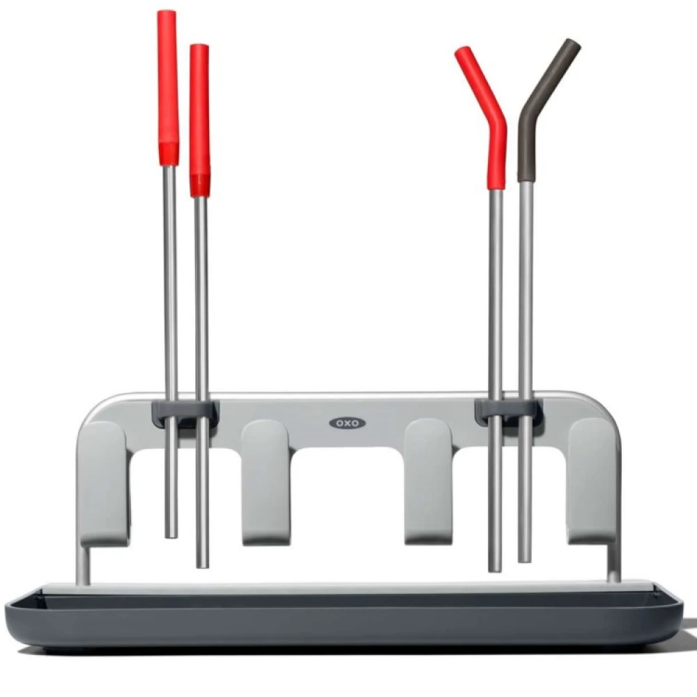 De to bløde sugerørholdere kan rumme to sugerør hver. I alt kan du tørre 4 sugerør, hver op til 1 cm i diameter på en praktisk og hygiejnisk måde.