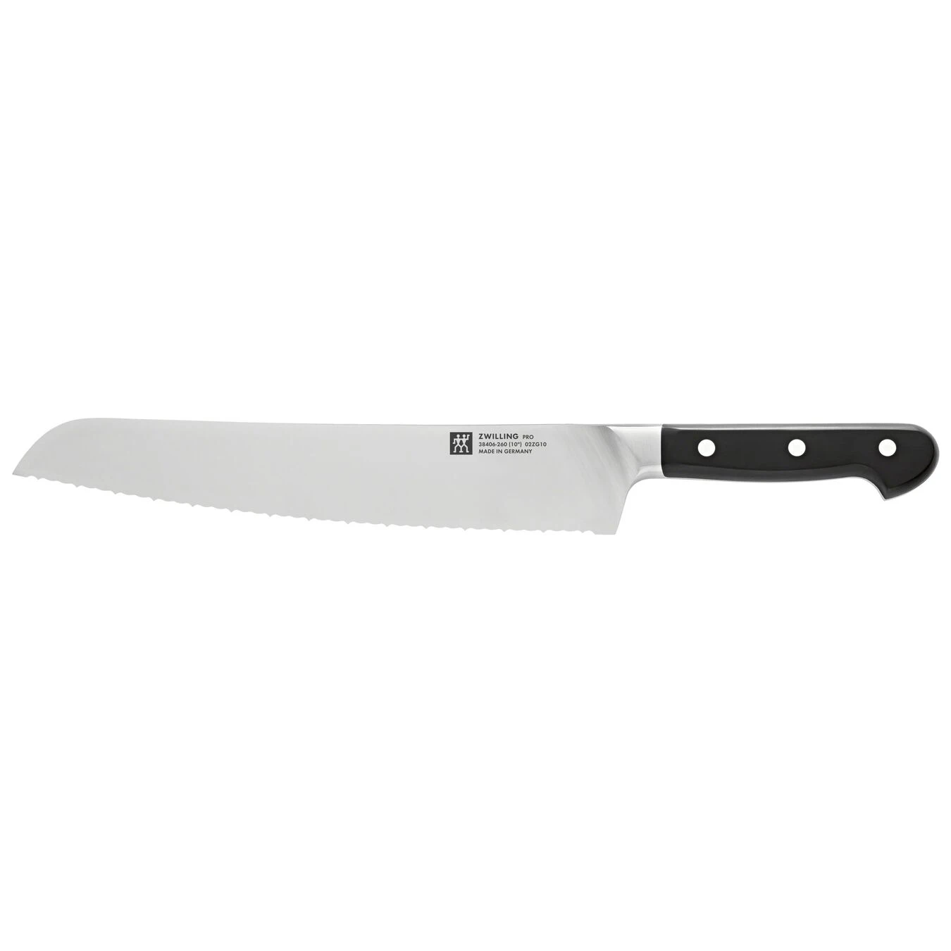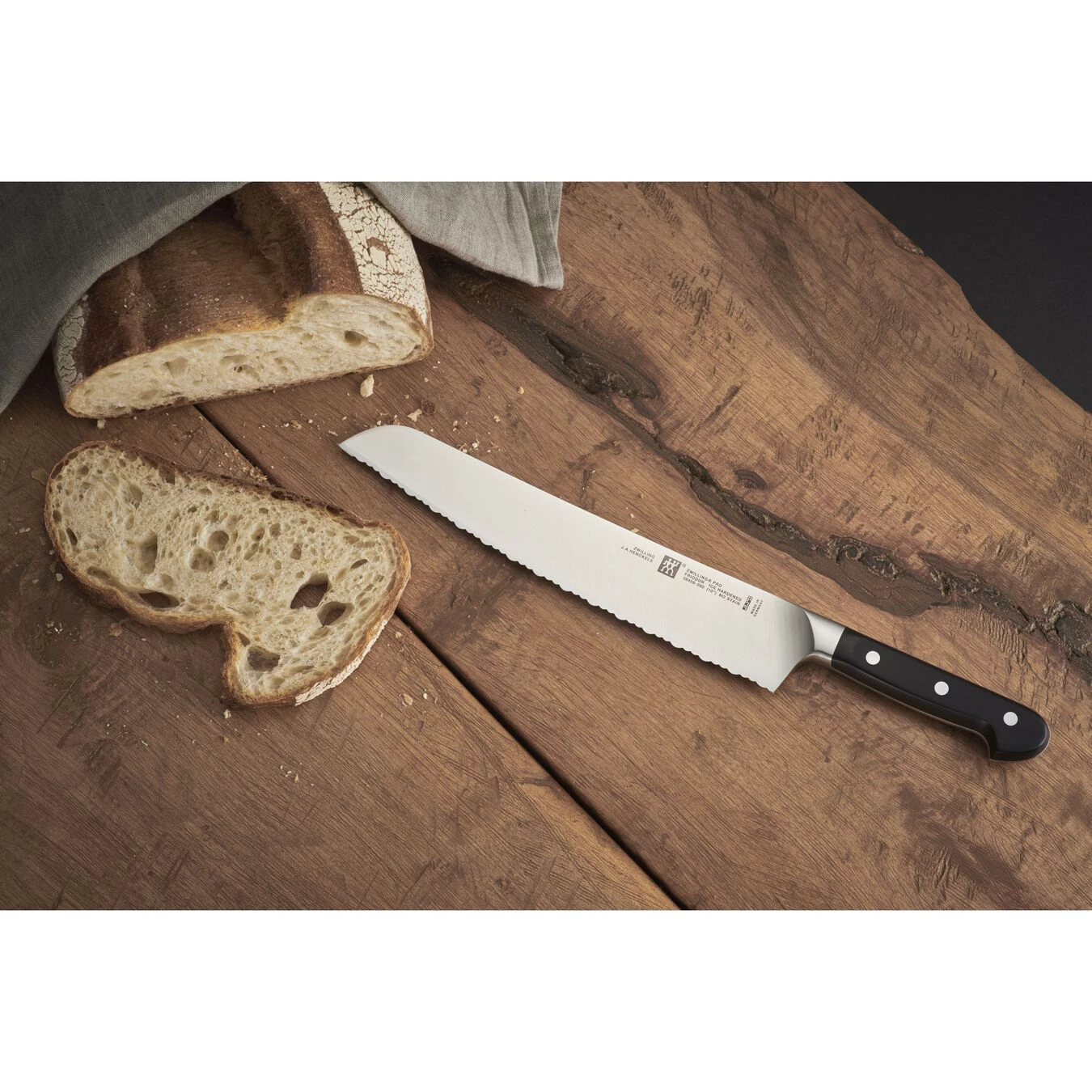 De høje krav fra professionelle kokke, samt madlavningsentusiaster, opfyldes med brødkniven fra ZWILLING® Pro serien. Det klassiske look og den innovative teknik bag denne sofistikerede kniv, en kombination, som kommer til sin ret, når den bliver mødt med hårde brødskorpe og større brød, overbeviser hurtigt enhver, der bruger den. Takket være det kontinuerlige skær kan du anvende hele knivsbladet under skæring, hvilket resulterer i rene og lige snit.
